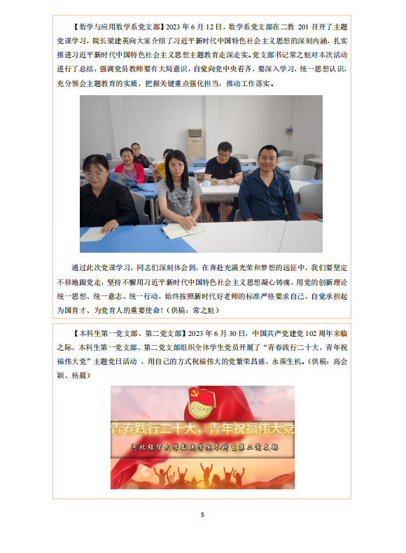 【本科生第一党支部、第二党支部】2023年6月30日,中国共产党建党102周年来临之际,本科生第一党支部、第二党支部组织全体员工党员开展了“青春践行二十大,青年祝福伟大党”主题党日活动 ,用自己的方式祝福伟大的党繁荣昌盛,永葆生机。(供稿:高会颖、杨晨)