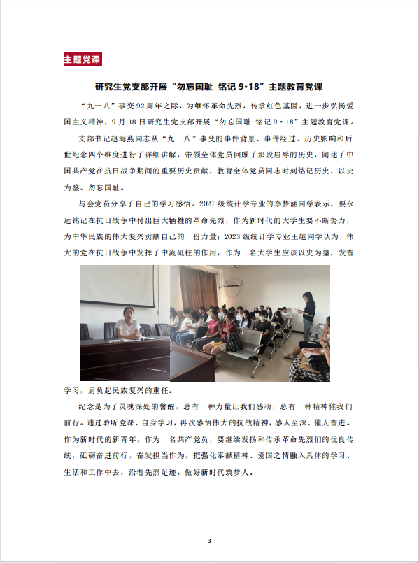 研究生党支部开展“勿忘国耻 铭记9·18”主题教育党课
