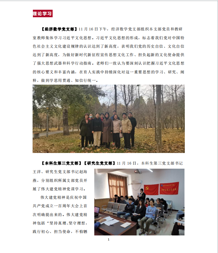 【本科生第三党支部】【研究生党支部】11月16日,本科生第三党支部书记王洋、研究生党支部书记赵海燕,分别组织所属支部党员开展了伟大建党精神党课学习。