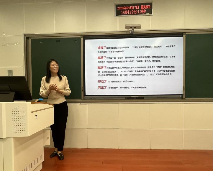 培训伊始,祃海霞围绕“八项规定是共产党人应该做到的基本要求”这一主题展开讲解。她深入阐述了八项规定对于党风廉政建设的重要性,强调这不仅是对党员干部行为的规范,更是每一位共产党人应坚守的基本准则。通过详实的案例和深入浅出的分析,让同学们深刻认识到八项规定精神在保持党的先进性和纯洁性方面所发挥的关键作用,激励同学们在今后的学习和生活中,时刻以八项规定精神为指引,以党员标准严格要求自己,学榜样、做榜样,早日成为一名合格的共产党员。