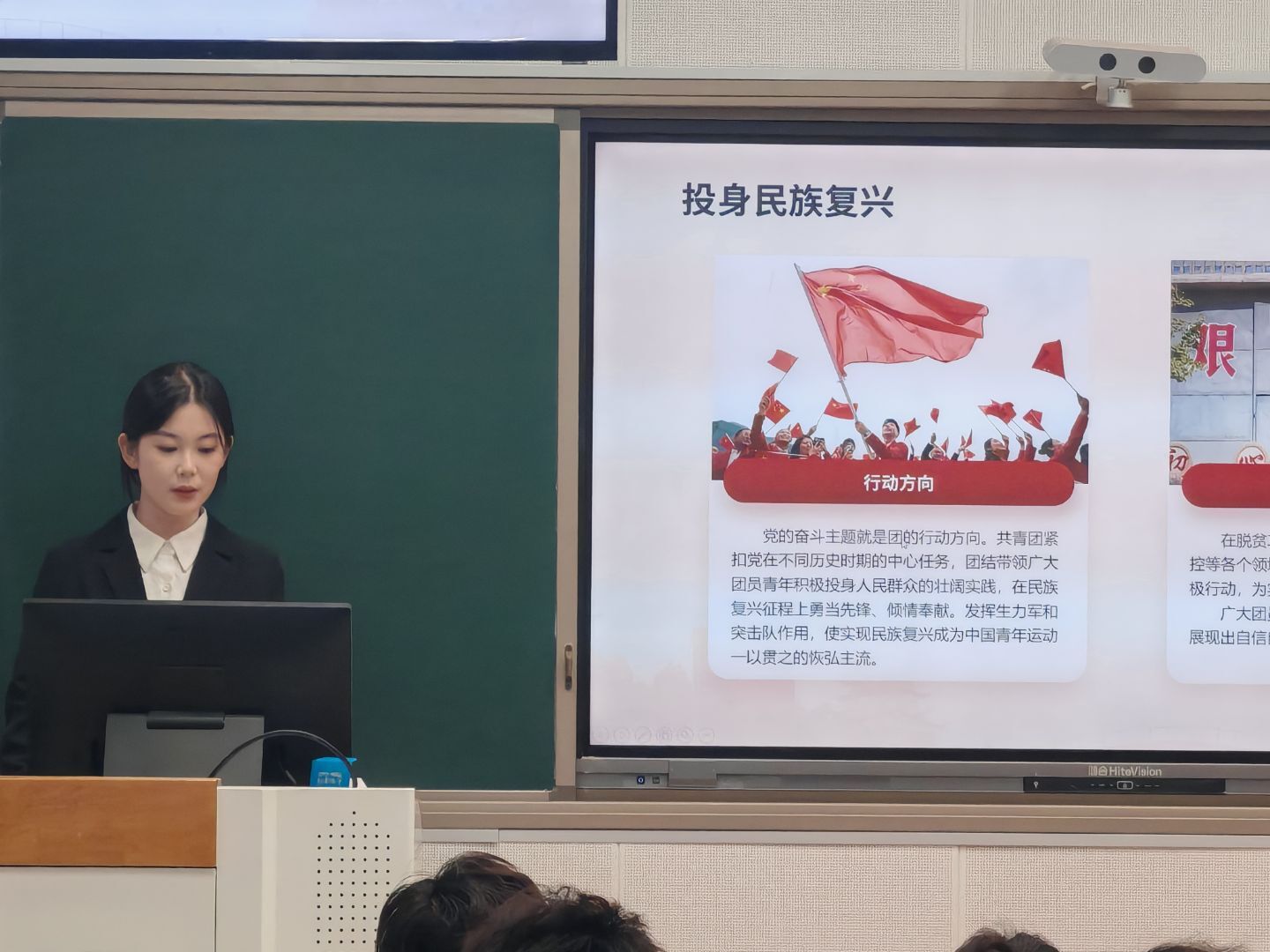 杨栩檬以《习近平总书记在庆祝中国共产主义青年团成立100周年大会上的讲话》为切入点,讲述了共青团百年奋斗历程与贡献与宝贵经验,阐释了新时代共青团的使命与担当,增强了入团积极分子的历史责任感与时代使命感。
