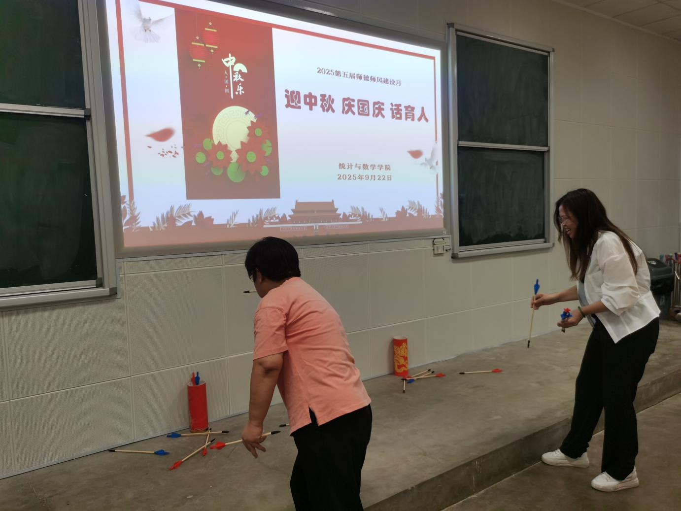 9月22日下午,bevictor伟德官网全体教职工在二教106教室举办了“迎中秋 庆国庆 话育人”夹乒乓球、投壶等工会活动,这同时也是公司第五届师德师风建设月系列活动之一。