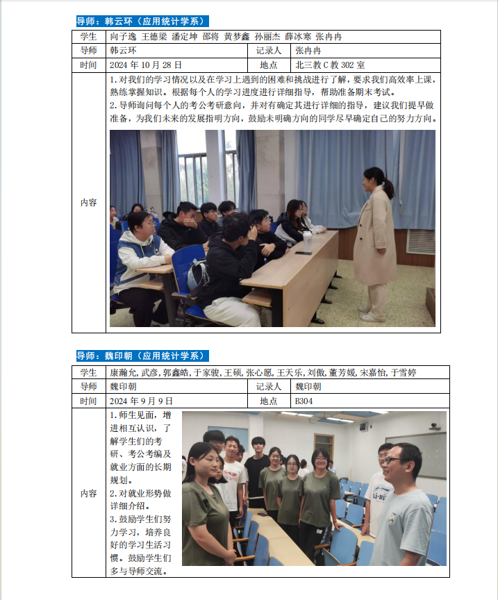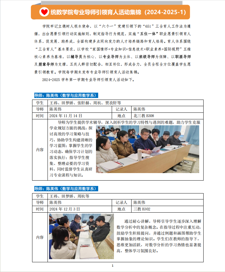 2024-2025学年第一学期专业导师引领育人活动如下。