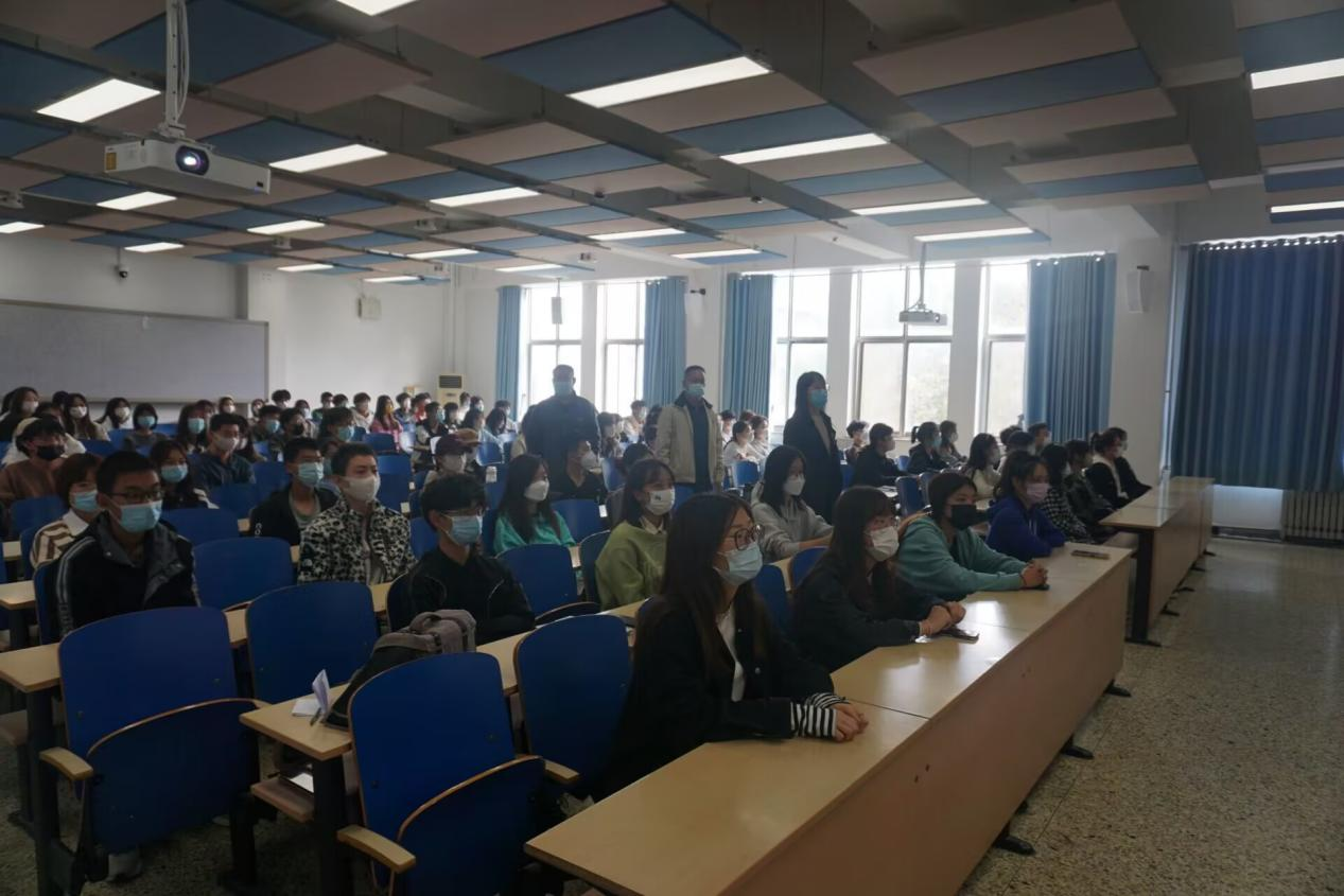 大会开始前,王关平强调了本次会议的重要性并希望同学们用心观看、有所收获。上午十点整大会正式开始,收看直播的同学们全体起立、高唱国歌,并向已逝的老一辈无产阶级革命家默哀,接着,大家认真聆听学习习近平总书记代表第十九届中央委员会所作的报告。他寄语广大青年:“青年强则国家强。当代中国青年生逢其时,施展才干的舞台无比广阔,实现梦想的前景无比光明。全党要把青年工作作为战略性工作来抓,用党的科学理论武装青年,用党的初心使命感召青年,做青年朋友的知心人、青年工作的热心人、青年群众的引路人。广大青年要坚定不移听党话、跟党走,怀抱梦想又脚踏实地,敢想敢为又善作善成,立志做有理想、敢担当、能吃苦、肯奋斗的新时代好青年,让青春在全面建设社会主义现代化国家的火热实践中绽放绚丽之花。”开幕会历时近两个小时,习近平总书记的所作的报告鼓舞人心、催人奋进,当习近平总书记报告结束时,同学们也随着现场代表们长时间热烈鼓掌。