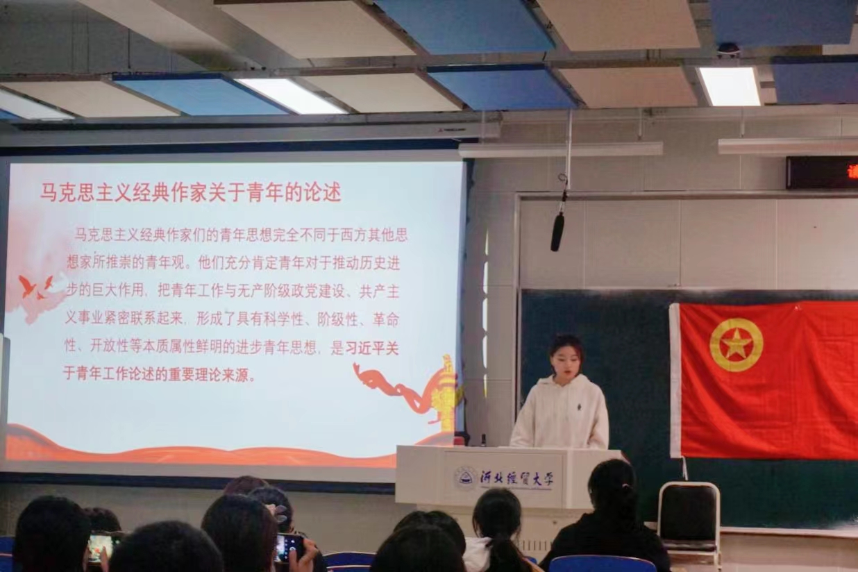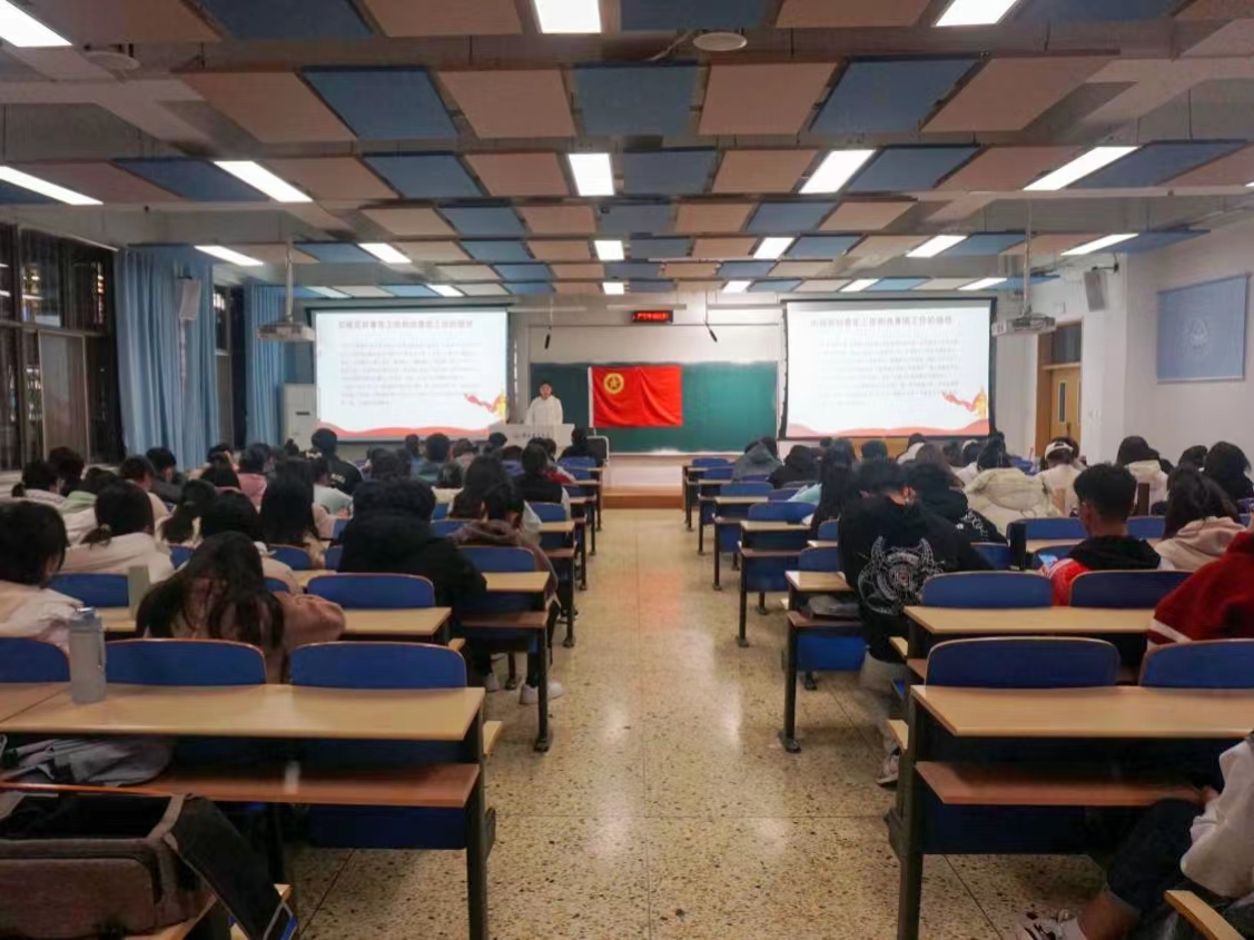 11月7日,数学与统计学公司于北三教A101举行第十三期“青年马克思主义者培养工程”骨干培训班第二课,团委组织部部长袁晨雨讲授第二课,全体青马班成员参加。