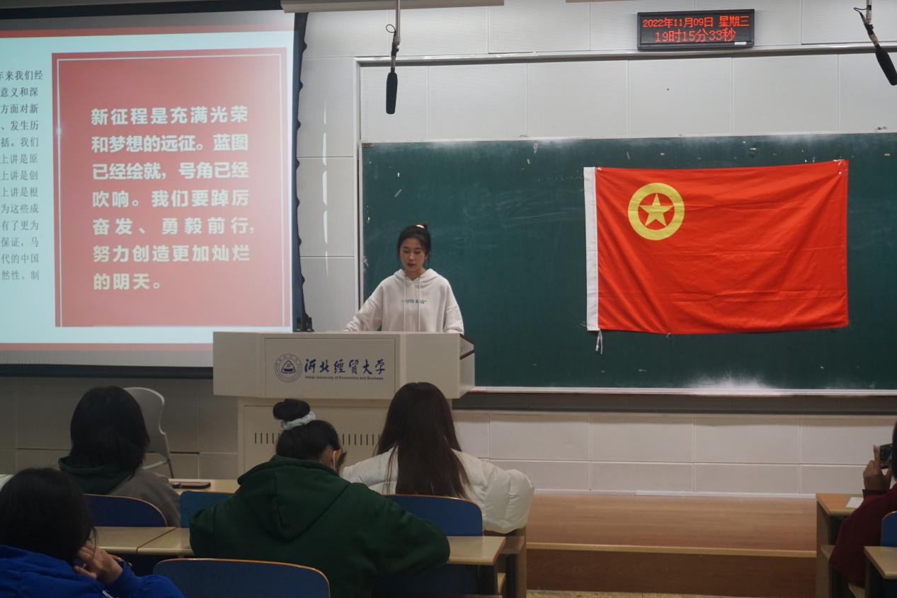 本次课程以解读党的二十大报告为主题。首先,她从报告相关内容讲起,包括大会主题、新时代十年来的三件大事、五个重大原则、“两步走”战略安排和中国共产党的中心任务等方面。接着,她通过短片介绍新时代十年伟大变革和过去五年工作总结。过去的五年,我们党团结带领人民攻克了许多长期没有解决的难题,办成了许多事关长远的大事要事,推动党和国家事业取得举世瞩目的重大成就。在新时代的十年来,党和国家事业取得历史性成就、发生历史性变革,推动我国迈上全面建设社会主义现代化国家新征程。最后,她阐述了青年团员要坚持把习近平新时代中国特色社会主义思想作为一切工作的根本遵循和行动指南,深刻把握其核心要义、精神实质和实践要求,深刻领会“两个结合”,坚持学思用贯通、知信行统一,自觉做坚定信仰者和忠实实践者。