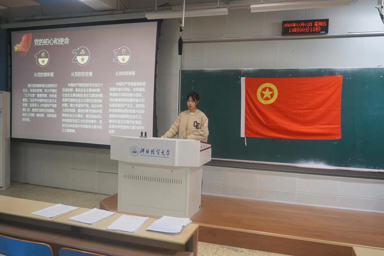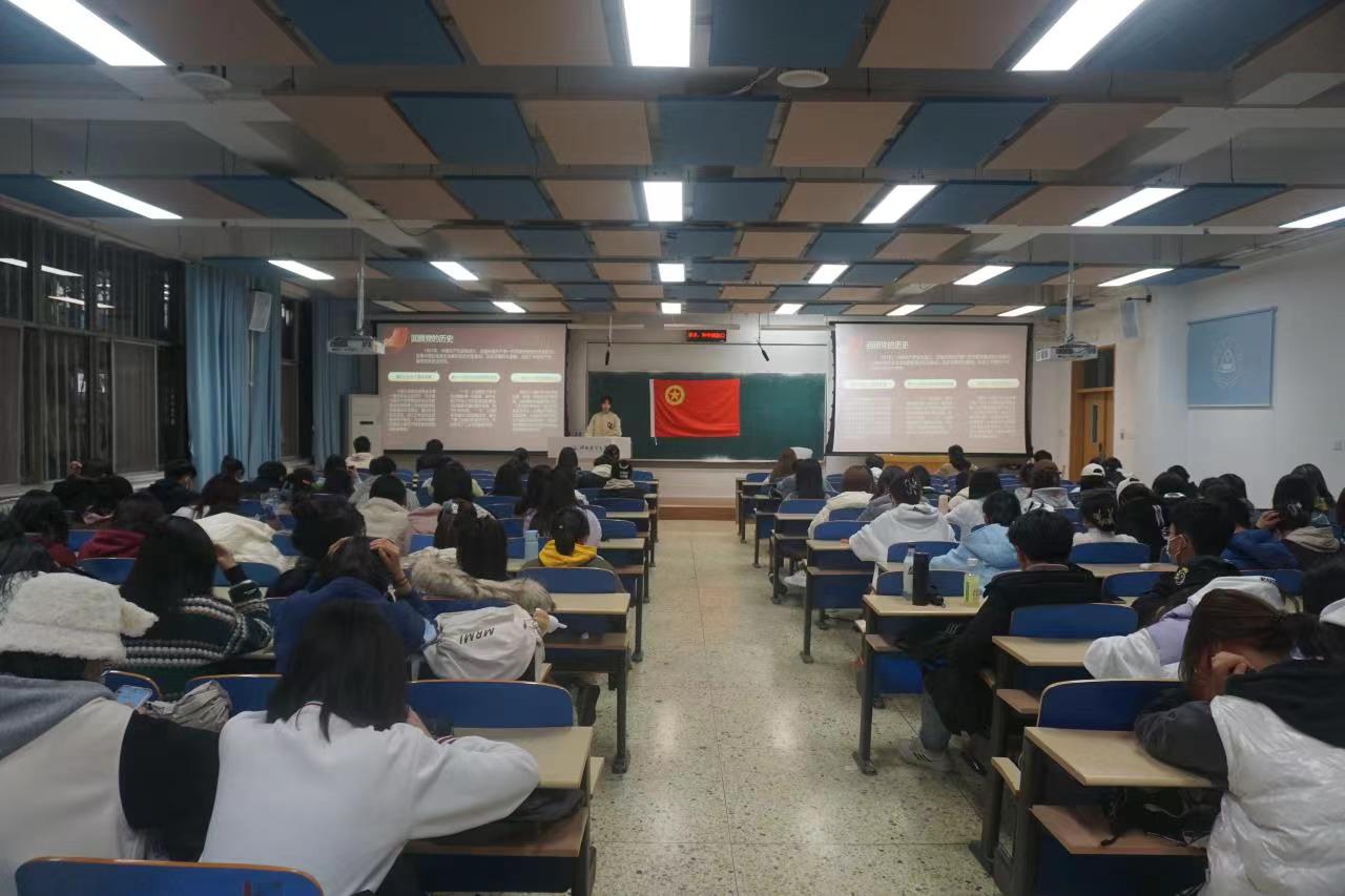 首先,她分别从党的指导思想、党的历史、党的奋斗目标三个方面为大家全面阐述了党的发展历程。讲到我们党一经成立,就义无反顾肩负起实现中华民族伟大复兴的历史使命,把坚持“人民利益高于一切”鲜明地写在自己的旗帜上,把全心全意为人民服务作为根本宗旨。接着,她带领大家回顾了党的百年历史。我们党的历史,就是一部不断推进马克思主义中国化的历史,就是一部不断推进理论创新、进行理论创造的历史。在一百年的奋斗中,我们党始终以马克思主义基本原理分析把握历史大势,正确处理中国和世界的关系,善于抓住和利用历史机遇,不断开辟马克思主义中国化时代化新境界。最后,她指出学习党史的重大意义以及带来的深刻启示。学习党的历史,就要从中汲取力量,筑牢信仰之基、补足精神之钙、把稳思想之舵,为实现崇高理想努力奋斗,回溯历史,我们党之所以能够经受一次次挫折而又一次次奋起,归根到底是因为我们党有远大理想和崇高追求。