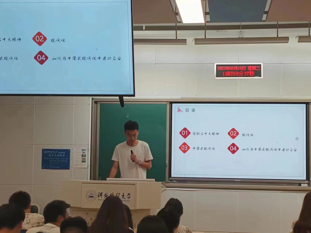 本次课程以学习宣传贯彻党的二十大精神,中国式现代化进程中建功立业为主题,共分为党的二十大精神、现代化、中国式现代化和如何在中国式现代化中建功立业四部分。田佳伟向学员们详细介绍了“党的二十大的主题”“三个务必”“十年来的三件大事”“六个必须坚持”“两步走战略安排”“五个重大原则”“五个必由之路”等重点内容,使学员们更加深刻地了解党的路线、方针、政策。最后,他还提出要将党的二十大精神充分融入中国式现代化建设中,同时当代青年应培养自己的专业技能和创新能力、关注社会问题并积极投身公益事业、掌握多语言和跨文化交际能力、积极参与创业和创新活动。