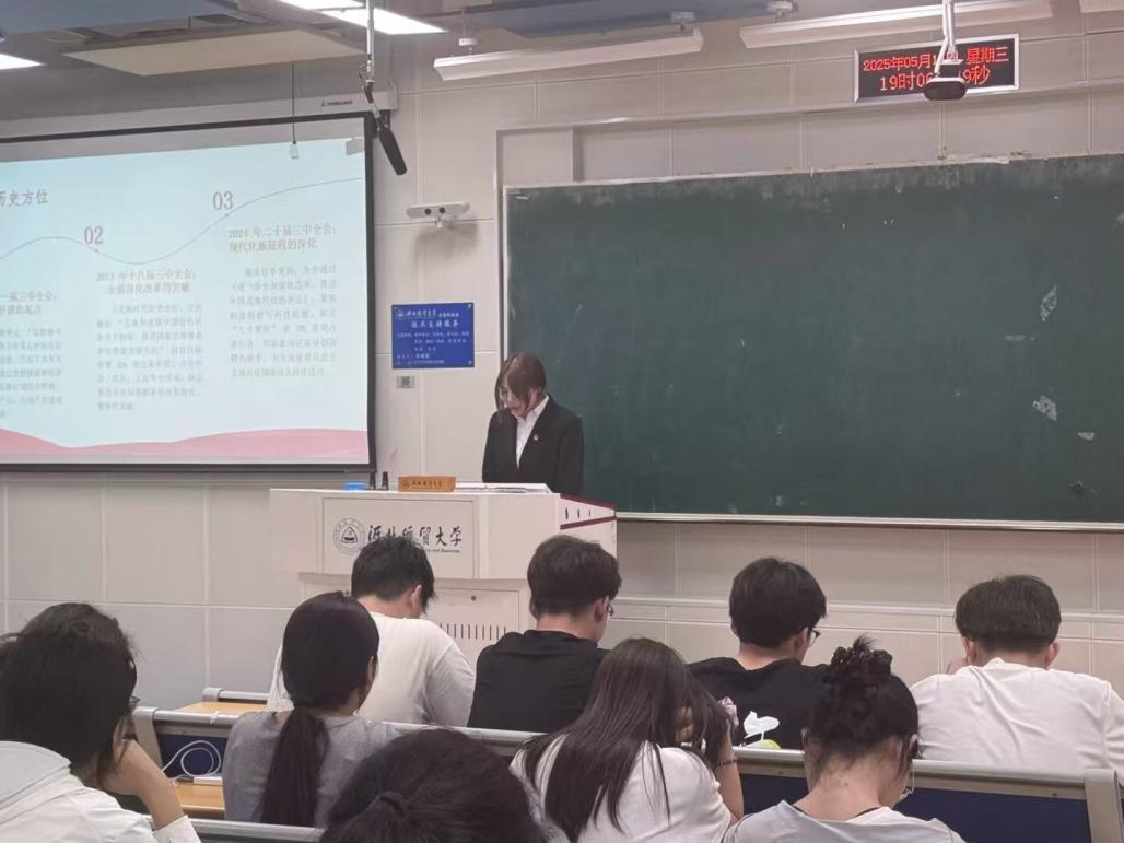 在第二节课中,团委组织部干事张茗雨围绕《学习党的二十届三中全会精神,奏响青春建功最强音》主题,以“全面深化改革推进中国式现代化”为核心,系统解读了“六个坚持”改革原则、七大领域改革部署,重点聚焦数字经济与实体经济融合、城乡要素双向流动等青年可参与的实践场景。课程提出“五有青年”成长标准,引导学员将个人成长与国家发展紧密结合,在高质量发展中找准青春坐标。