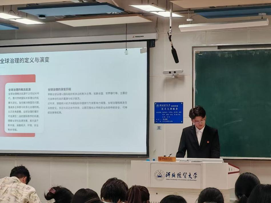在最后一节课中,团委宣传部干事白希超在《国际视野下的中国青年—全球治理与青年责任》课程中,用“青年科研人员占量子计算领域60%”等数据,展现中国青年在全球治理中的作为,分学术交流、创新创业、文化传播三类场景,介绍参与联合国活动、跨境电商、非遗推广等具体路径,激励广大青年在国际舞台传递中国声音。