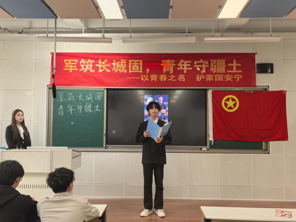 11月3日,24统计2班在北三教A107开展“军筑长城固,青年守疆土”国防安全教育主题团日活动。