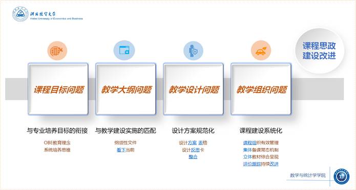 祃海霞从当前课程思政示范课建设中存在的课程目标、教学大纲、教学设计、教学组织等四方面普遍性问题出发,提出课程目标要落实OBE教育理念和系统培养思维,做好与专业培养目标的贯通衔接;教学大纲以及教学设计方案作为纲领性教学文件和教学顶层设计,要注重系统推进和设计方案的规范化、标准化,同时,整合公司原有的《课程思政教学设计及反思卡》和部分课程的方案设计呈现,推出课程思政教学设计方案模板;教学组织要遵循课程建设系统化思路,努力实现课程组织有效管理、集体备课常态机制、立体教材综合呈现、评价跟踪持续改进。《微积分》《统计学》课程思政示范课负责人王玲书、张良勇老师,结合日常的课程教学和本次认证申报经过,就课程组组建、课程思政建设做了交流分享,老师们深受启发,受益匪浅