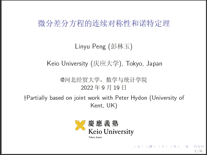 9月19日下午,数学与统计学公司邀请日本庆应大学彭林玉教授在线作题为“微分差分方程的连续对对称性和诺特定理”的学术报告。报告由数学与统计学公司副经理闫亮主持,30余名师生参加。