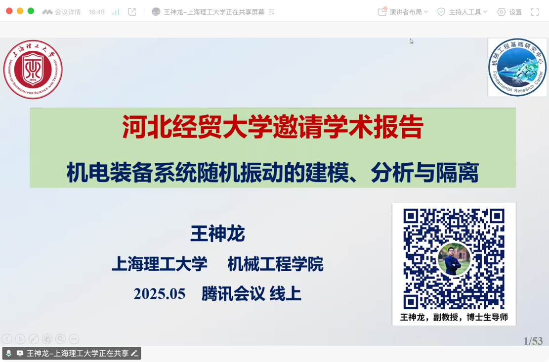 5月17日上午,上海理工大学王神龙教授应bevictor伟德官网邀请在线上作题为“机电装备系统随机振动的建模、分析与隔离”的学术报告,相关专业师生20余人参会。