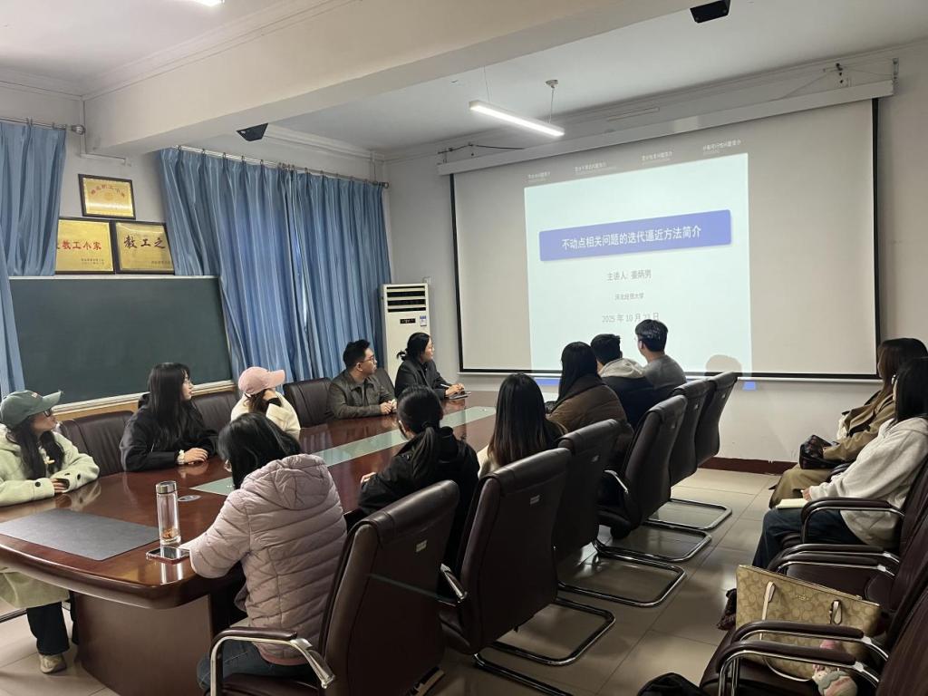 10月23日下午,伟德中国官网“双百”论坛暨统数论坛系列讲座在四办405会议室举行。bevictor伟德官网姜炳男老师作题为“不动点相关问题的迭代逼近方法”的学术报告。本次报告由bevictor伟德官网副经理王玲书主持,公司青年教师及研究生20余人参加。