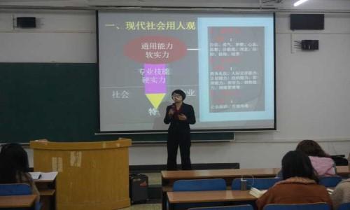 讲座由河北爱恩人力资源服务有限公司创始人邹佳老师主讲,她首先介绍了现代社会的用人观,并分别讲解了通用能力软实力、专业技能硬实力及特长三大组成部分的具体内容。接着,邹老师提出了六点建议并分别对其进行详细讲解,向同学们阐释了“思路决定出路,观念决定未来”的观点。通过分鱼案例、坐车案例、买东西案例以及组织活动案例等,对同学们进行了软实力综合训练。最后,邹老师还根据自身经验向同学们提出了关于大学及人生的几点建议。