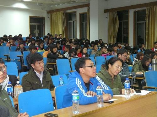 接下来,各位老生代表结合自身在大公司园或在社会职场的成长经历和成功经验,从不同角度对新生提出的各种问题分别作了解答。他们的解答有的侧重具体课程的学习方法,有的着眼目标计划的合理制定,有的强调时间精力的科学分配,有的突出攻坚克难的自强精神,也有的对同学们在校期间应注重的强健体魄、广泛交友、学识专博、理性心态等方面问题提出了综合性建议。老生们的解答既体现了较强的现实针对性,又具有积极的启发和指导意义。他们朴素的语言,诚恳的态度,感人的经历和昂扬的面貌深深感染了在场师生,引发了强烈的共鸣,也赢得了阵阵钦佩与赞许的掌声。