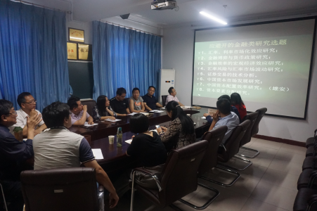 会上,顾老师提出了关于申报经济、统计类国家级选题要保证申请者及课题组要基础扎实、选题要基于稳定的研究方向并结合改革实践,把握学科前沿。讲授了经济研究中的定量化趋势及课题论证分析的问题,顾老师在讲授经验的过程中展示了多个课题并提出了应该避开的课题选题。最后,与会教师与顾老师就在选题过程中的问题进行了深入交流。