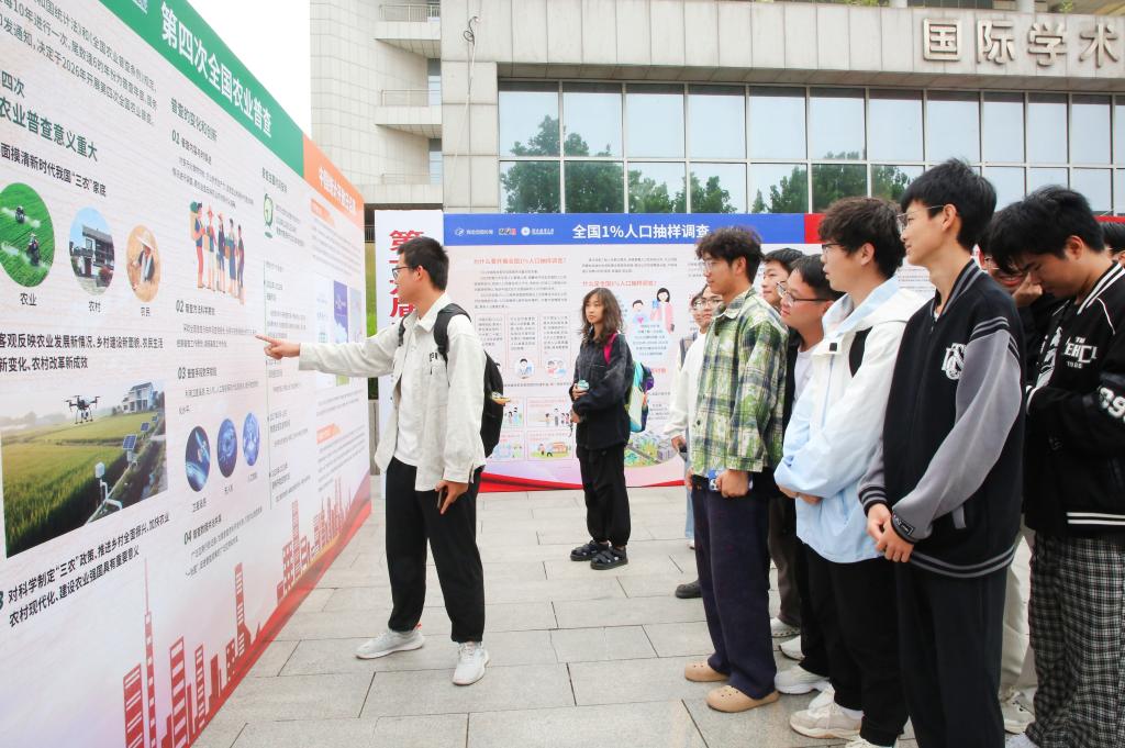 活动现场,公司以“数据赋能总体国家安全观”为主题设置了相应展区,展示“国之大者:数据安全赋能总体国家安全观”“安全护航:筑牢统计数据安全防火墙”“法治根基:《统计法》守护数据生命线”等内容;现场还设置了“红色统计史”“统计开放日沿革”“1%人口抽样调查”“第四次全国农业普查”展区,以图文并茂的形式展示统计事业的发展历程和重要成果。展区吸引了众多员工驻足观看,咨询台前专业人士与学子们进行面对面交流,现场气氛热烈,互动频繁。员工们通过现场互动,深刻体会到统计数据背后的责任与使命,纷纷表示要学好专业知识,加强实践锻炼,为统计事业长远发展注入经贸力量。