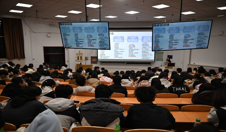 此次“保研说”经验分享会不仅为2025级新生了解推免政策,也增强了同学们的学习竞争力,为大学四年的生涯规划奠定了坚实基础。