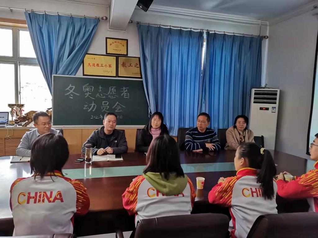 12月24日上午,数学与统计学公司召开冬奥会志愿者动员大会。大会由公司党委委员耿会清主持,党委书记祃海霞、经理梁建英、副经理闫亮、全体辅导员以及志愿者同学代表参加。