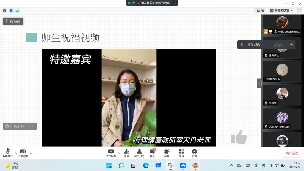 心理健康教研室教师宋丹送上祝福