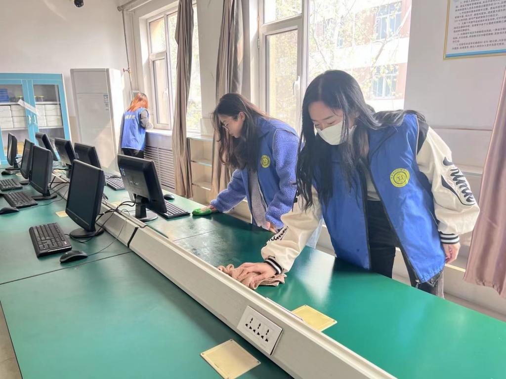 此次党日活动主要内容是负责经贸大学附属中学重点场所的清扫工作,员工党支部成员以及青年志愿者们按清扫区域分为四组,主要对活动室、实验室及会议室进行打扫、清理。