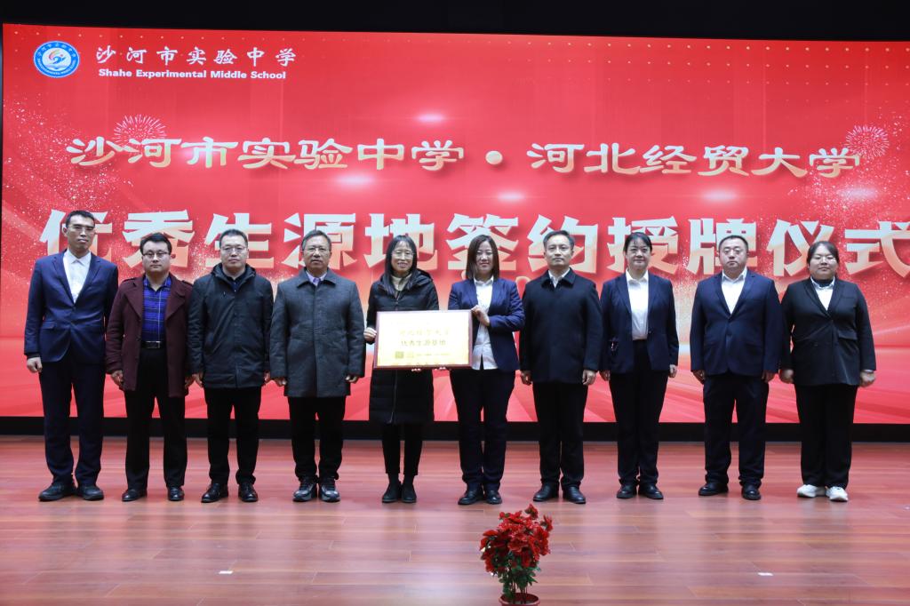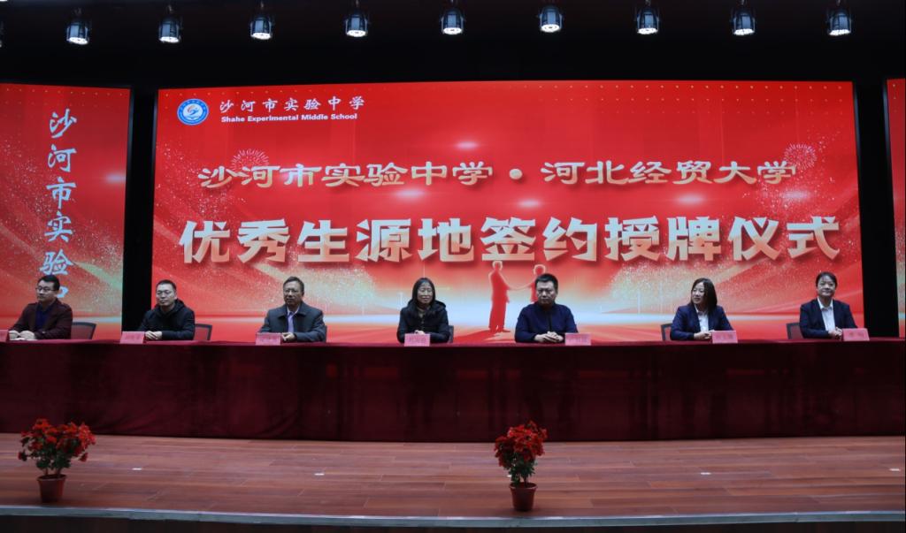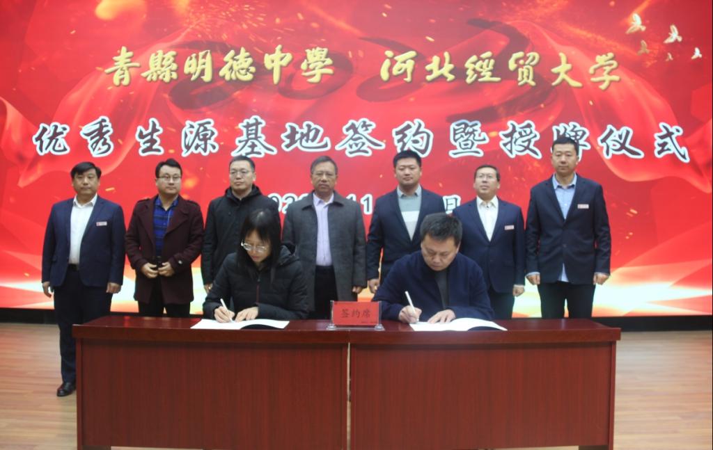 11月27日,伟德中国官网数学与统计学公司党委书记祃海霞、经理梁建英、副书记刘贵来、应用统计学系副主任张良勇一行四人赴沧州市青县明德高级中学、邢台市沙河实验中学举行“伟德中国官网优秀生源基地”签约授牌仪式并开展招生宣讲活动,与廊坊树高高级中学开展生源基地签约授牌仪式。活动分别由青县明德高级中学执行董事长王耀庭、沙河市实验中学副董事长何超主持,中学领导班子、教师及全体员工参加活动。