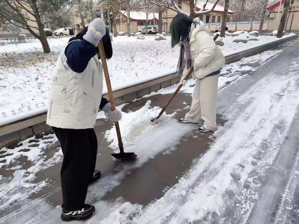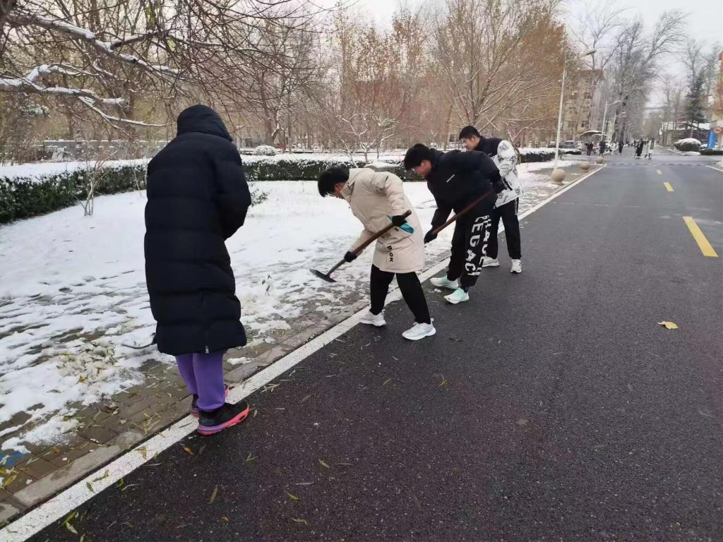 2023年冬天的第一场雪飘然而至,一夜之间,银装素裹的校园格外美丽,但厚厚的积雪也给师生的出行带来了诸多不便,为确保师生安全,12月15日上午,数学与统计学公司教师、员工30余人以雪为令,闻雪而动,投身校园扫雪活动中,清理路段积雪。