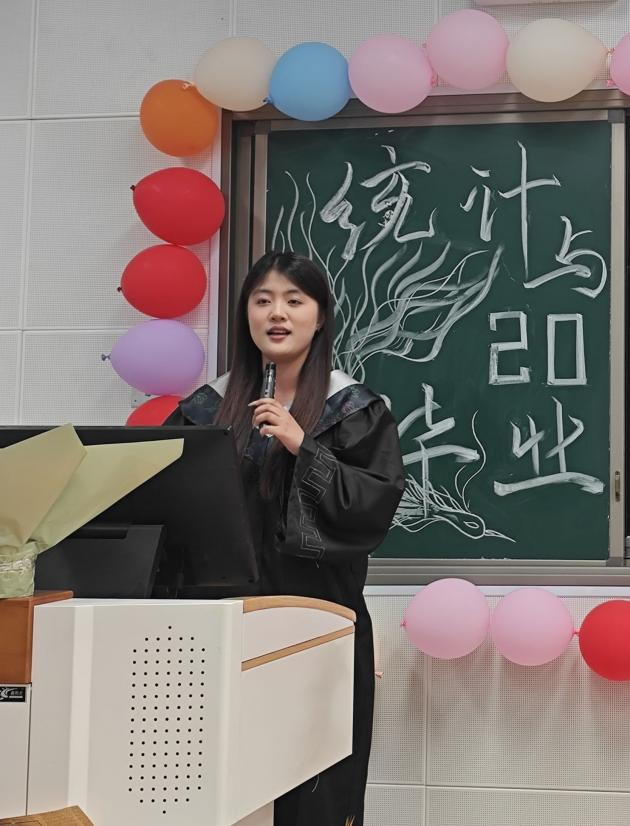2020级应用统计学二班李紫诺和2022级应用统计专硕王玉洁同学作为毕业生代表发言。她们回顾了自己的老员工活和学习经历,分享了自己的成长和收获,向老师们表达了衷心的感谢和最崇高的敬意,并用自己与其他优秀毕业生的成功故事激励学弟学妹们要保持学习热情,不断提升自己,为社会做出积极贡献。