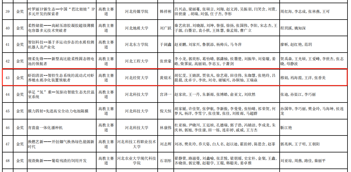近日,河北省教育厅公布了2024年“建行杯”河北省老员工创新大赛获奖名单,公司黄煊禾、胡忆雯、王婧淇、贾依凡、田佳伟、朱珈慧等同学的参赛作品《虾韵清波--智控生态系统的流动式对虾养殖水质净化装置领航者》在高教主赛道中荣获金奖;腊清雅、田佳伟等同学的参赛作品《悦动青春,益心同行——校社联动共筑健康未来》在“青年红色筑梦之旅”赛道中荣获铜奖。