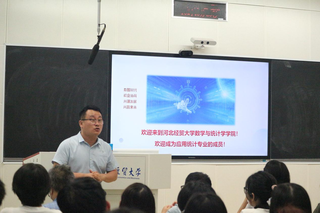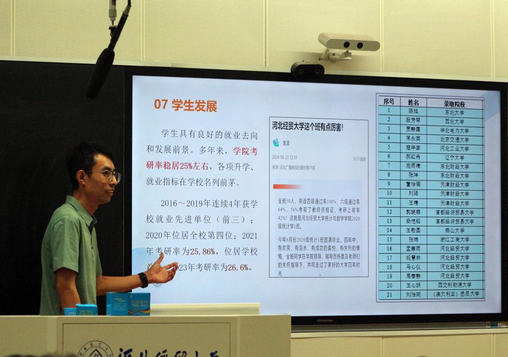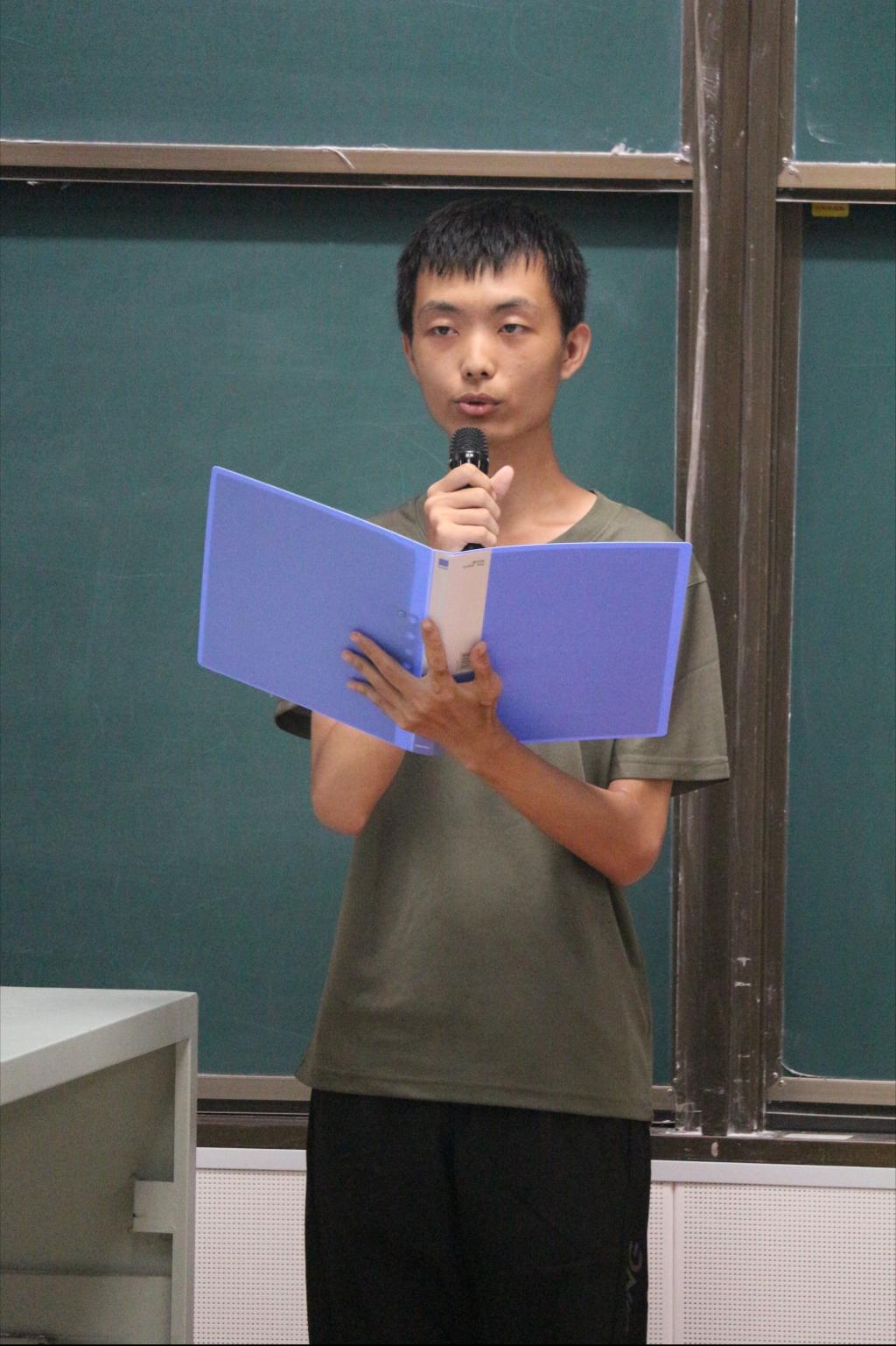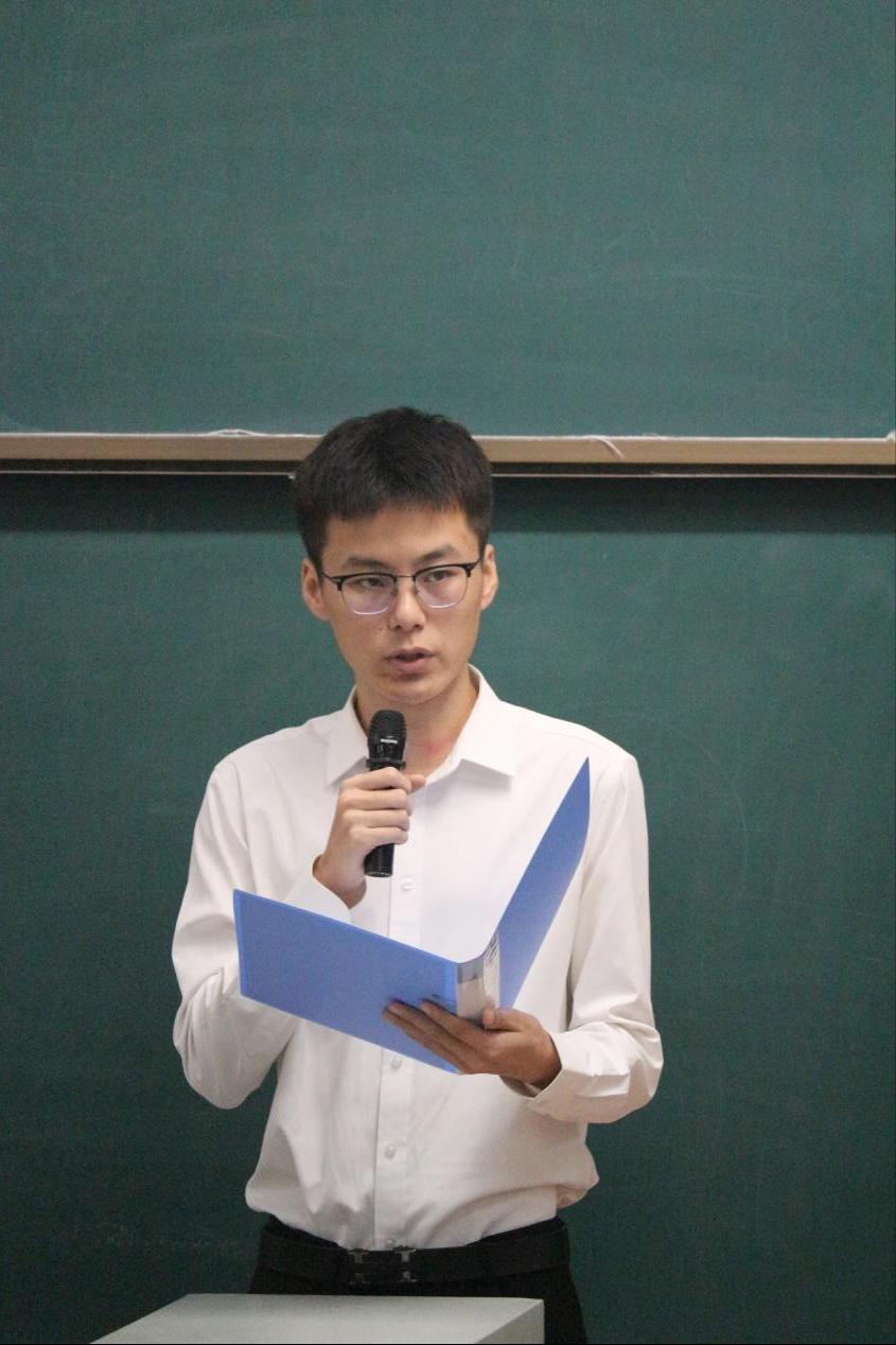 在校生代表2022级统计学一班田佳伟同学发言。他希望学弟学妹们要珍惜时光,勇于尝试新事物,积极参与各项活动,实现自己的全面发展。