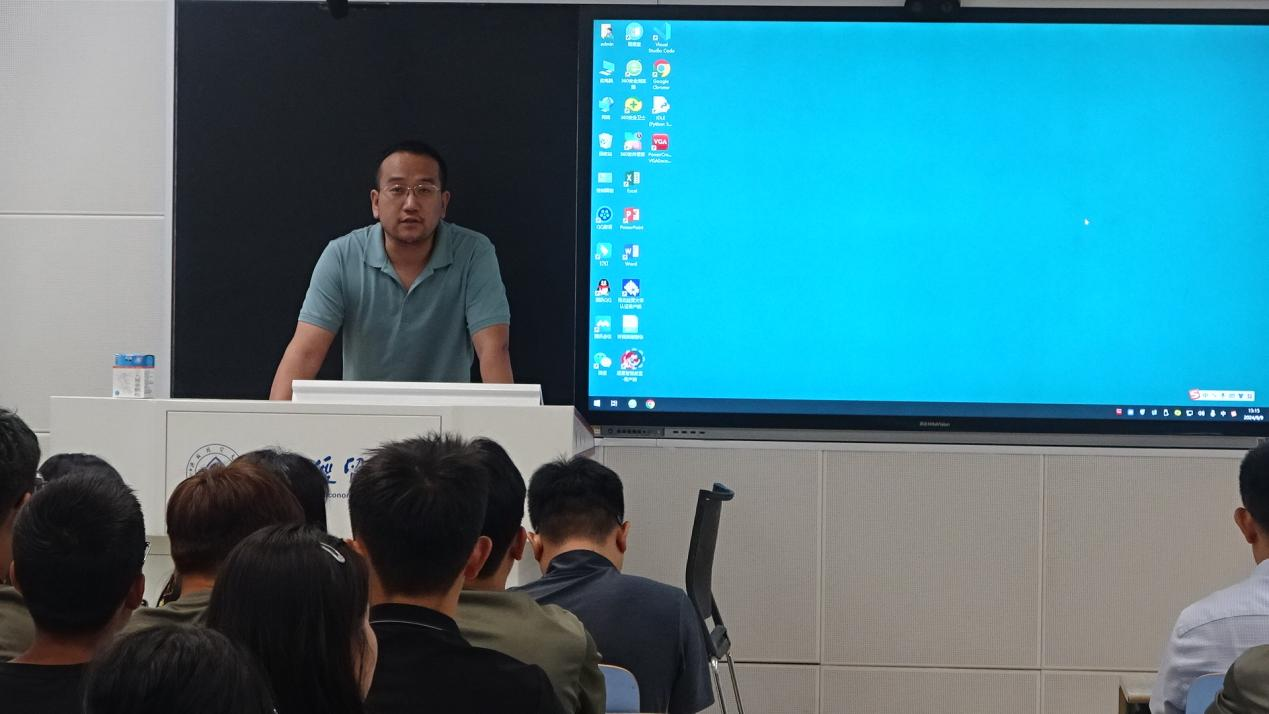 新生代表2024级数学与应用数学二班王翰林同学发言。他表示经贸将是我们梦想起航的地方,希望大家努力拓展视野、提升本领,争做一名合格的新时代老员工。
