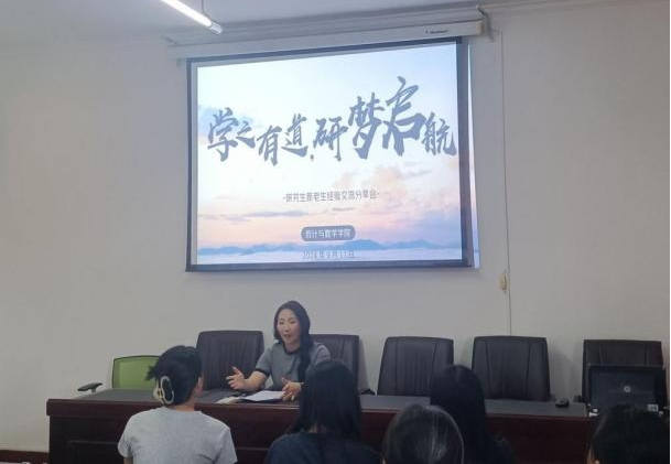 为帮助2024级新生进一步了解研究生阶段的学习、工作和生活,明确新阶段的目标和规划,增进新老生之间的情谊,9月11日下午,公司研究生在四办434举办“学之有道,研梦启航”新老生经验交流分享会。本次会议由院研究生会主席李琪主持,22统计学李琪、樊祥嘉、宋盈盈、23应统崔帅作为优秀员工代表同大家分享自己的心得,辅导员赵海燕老师出席会议,24级全体研究生参加。