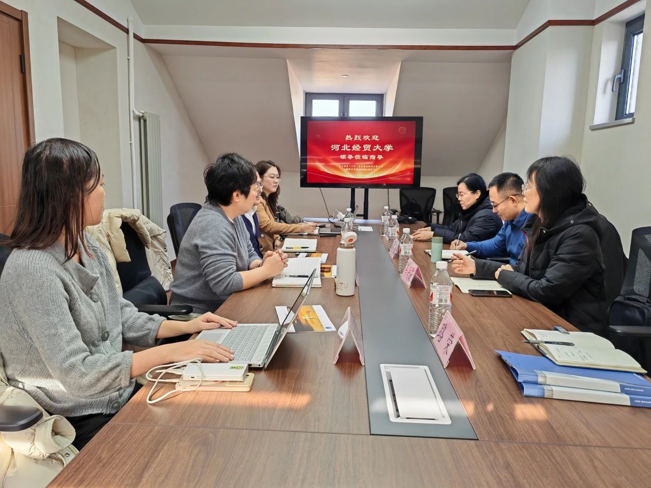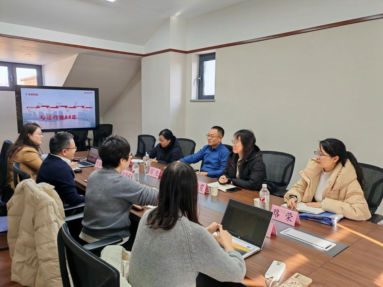刘恒超代表企业对公司一行表示热烈欢迎。两位企业领导详细介绍了企业发展历程、使命愿景、价值观、幸福观、服务项目总览、培训课程研发以及未来发展规划等内容。