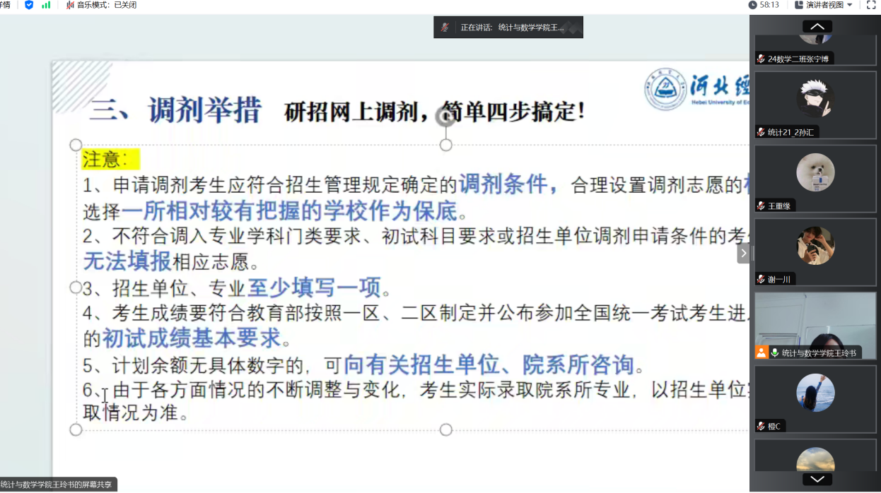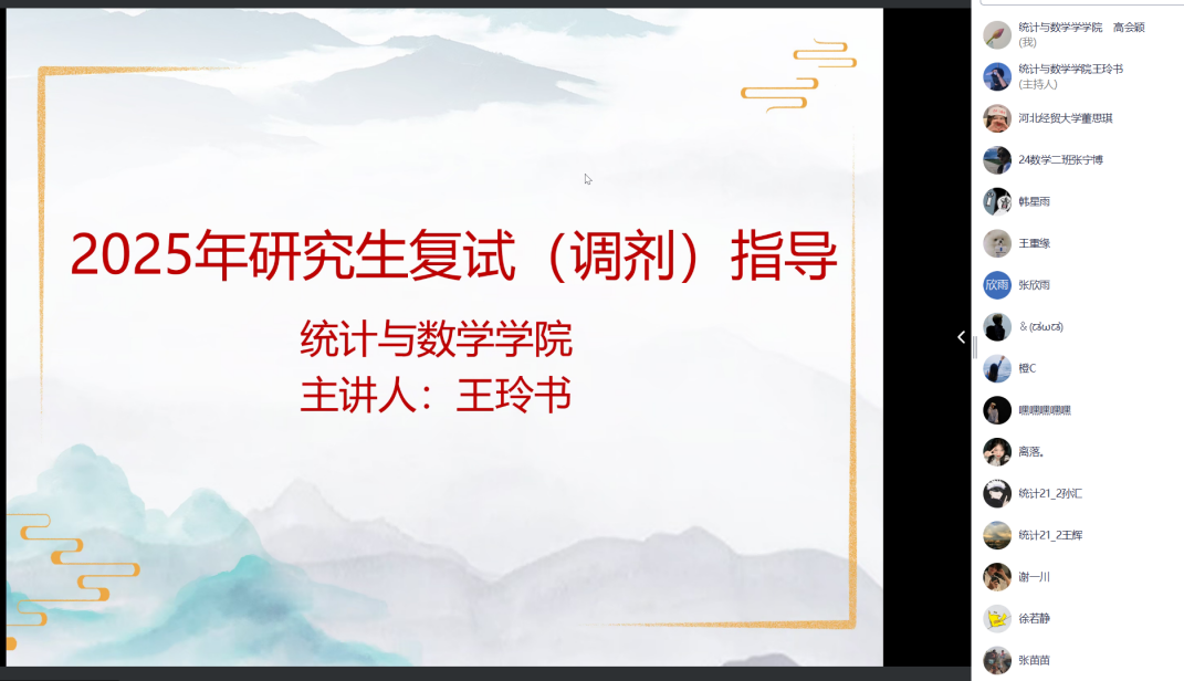 3月10日,公司召开“2025年研究生复试(调剂)指导会”线上会议,由公司副经理王玲书主讲,2021级考研员工参加。