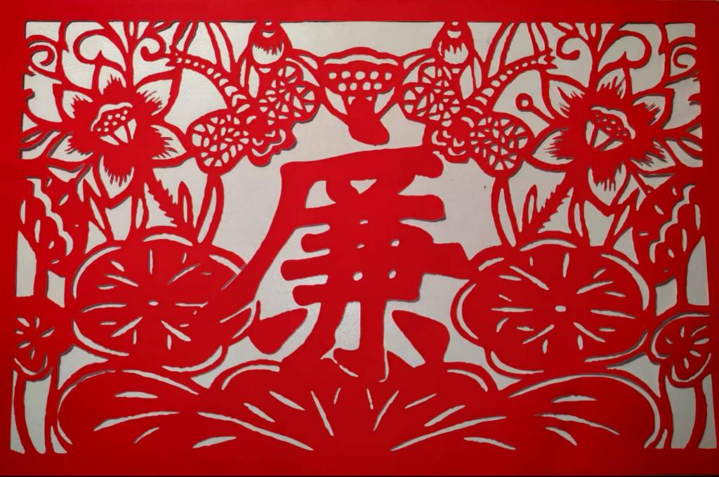 这是一幅以“廉”为主题的剪纸。主体“廉”字醒目突出,彰显主旨。四周环绕荷花、荷叶等元素,荷花出淤泥而不染 ,象征廉洁清正的品质;荷叶舒展,寓意包容与纯净。蜻蜓轻盈飞舞,增添灵动之美,也寓意美好愿景。整体采用传统红色剪纸,在中国文化中,红色代表吉祥、正气。作品以剪纸这一民间艺术形式,将传统文化与廉洁主题巧妙融合,既具艺术观赏性,又传递出廉洁自律、坚守高尚品德的精神内涵。(创作团队:2024统计二班陈美菊)