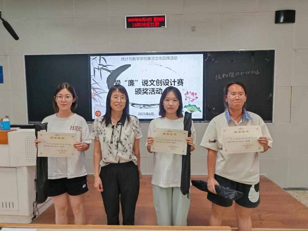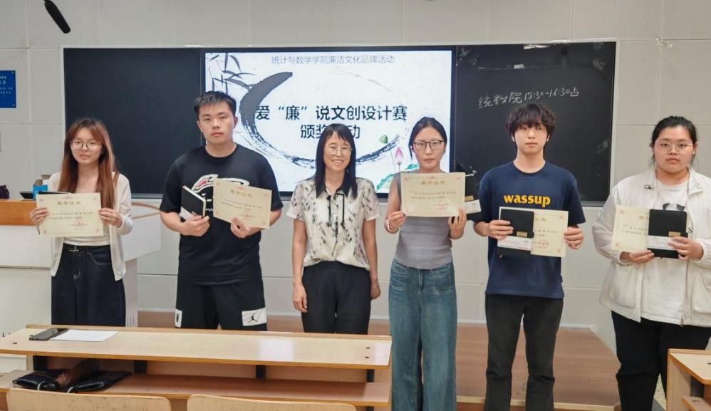 6月12日下午,统数公司在北三教A105举办了爱“廉”说文创设计赛颁奖活动,公司党委书记祃海霞、全体获奖同学参加,专职组织员杨晨老师主持。