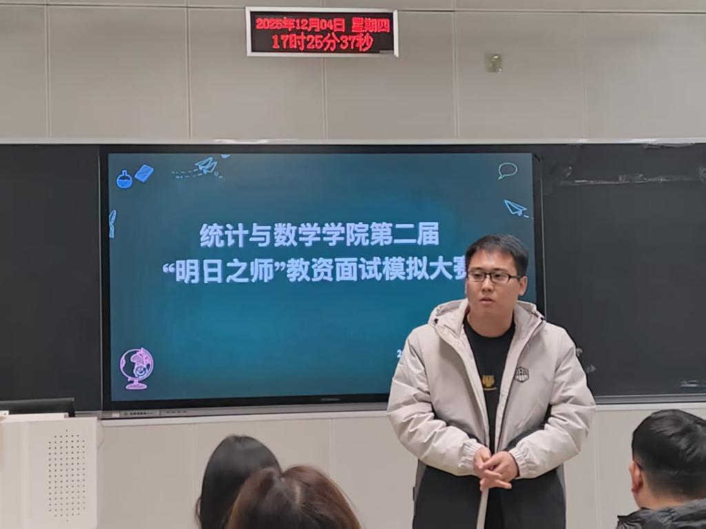 为帮助公司员工熟悉教团队格证面试基本流程,感受考场氛围,提升教学技能,12月4日下午,bevictor伟德官网于北三教A105举办第二届“明日之师”教资面试模拟大赛。本次比赛由院员工会学习部主办,院团委书记王洋、数学系教师常艳洁、工程数学教研室教师姜炳男出席并担任评委。