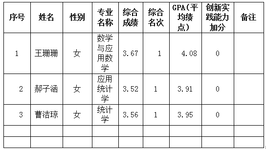 根据《2019年伟德中国官网推荐优秀应届本科毕业生免试攻读硕士学位研究生工作方案》,公司成立推免生工作小组,对员工提交的相关证明材料,进行认真审核、计算,最终确定公司统计学、应用统计学、数学与应用数学专业推荐名单。现公示如下: