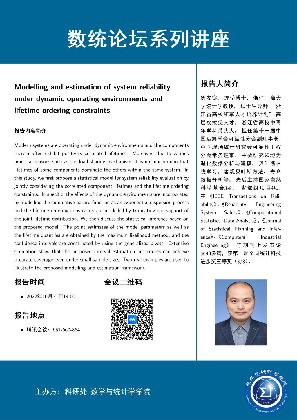 报告题目:Modelling and estimation of system reliability under dynamic operatingenvironments and lifetime ordering constraints