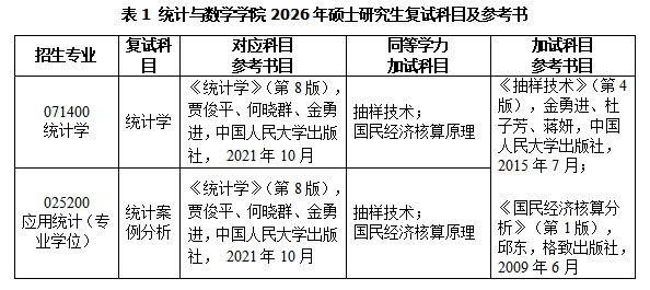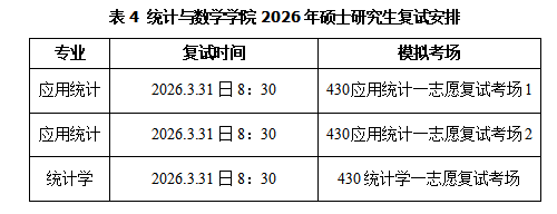 报考公司应用统计和统计学专业的一志愿合格生源(初试成绩达到2026年全国硕士研究生招生考试考生进入复试的初试成绩基本要求(A类考生))按初试成绩总分(加上符合国家加分政策的加分)由高到低排序,确定参加复试的考生名单。公司一志愿考生复试名单见公司研究生院公示复试名单。