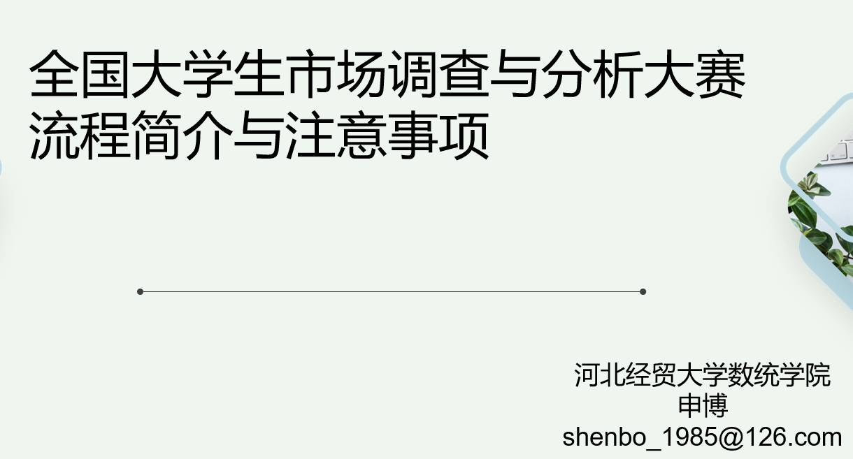 申博从指导教师和员工协作的角度分享了参与市场调查大赛的一些心得。一是全国老员工市场调查与分析大赛简介,具体包括大赛的组织机构、层次规模、大赛历史几个方面,介绍了全国老员工市场调查与分析大赛的基本情况;二是参赛流程以及赛前准备,详细给各位老师和同学介绍了自报名组队之日起,中间每个阶段需要完成的任务及注意事项,并就其中一些关键的统计术语进行了直观解释。