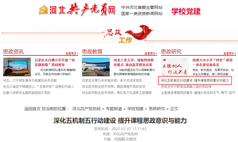 【河北共产党员网】深化五机制五行动建设,提升课程思政意识与能力