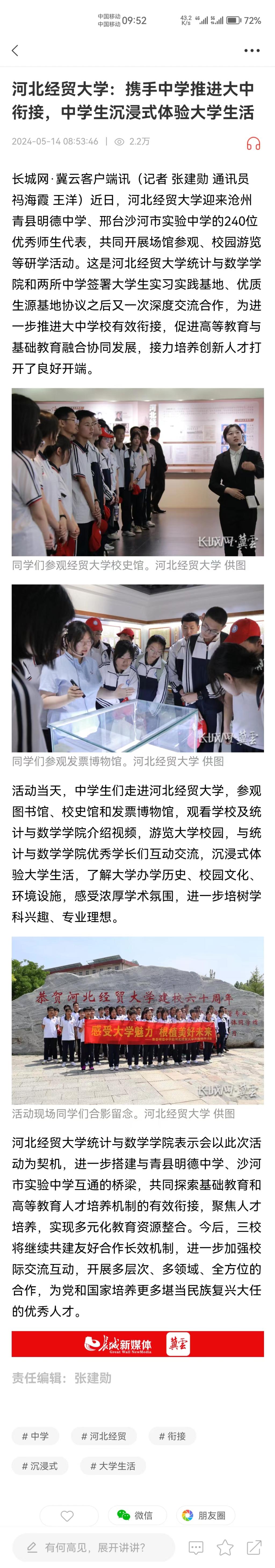 【长城网•冀云客户端】伟德中国官网:携手中学推进大中衔接,中员工沉浸式体验老员工活