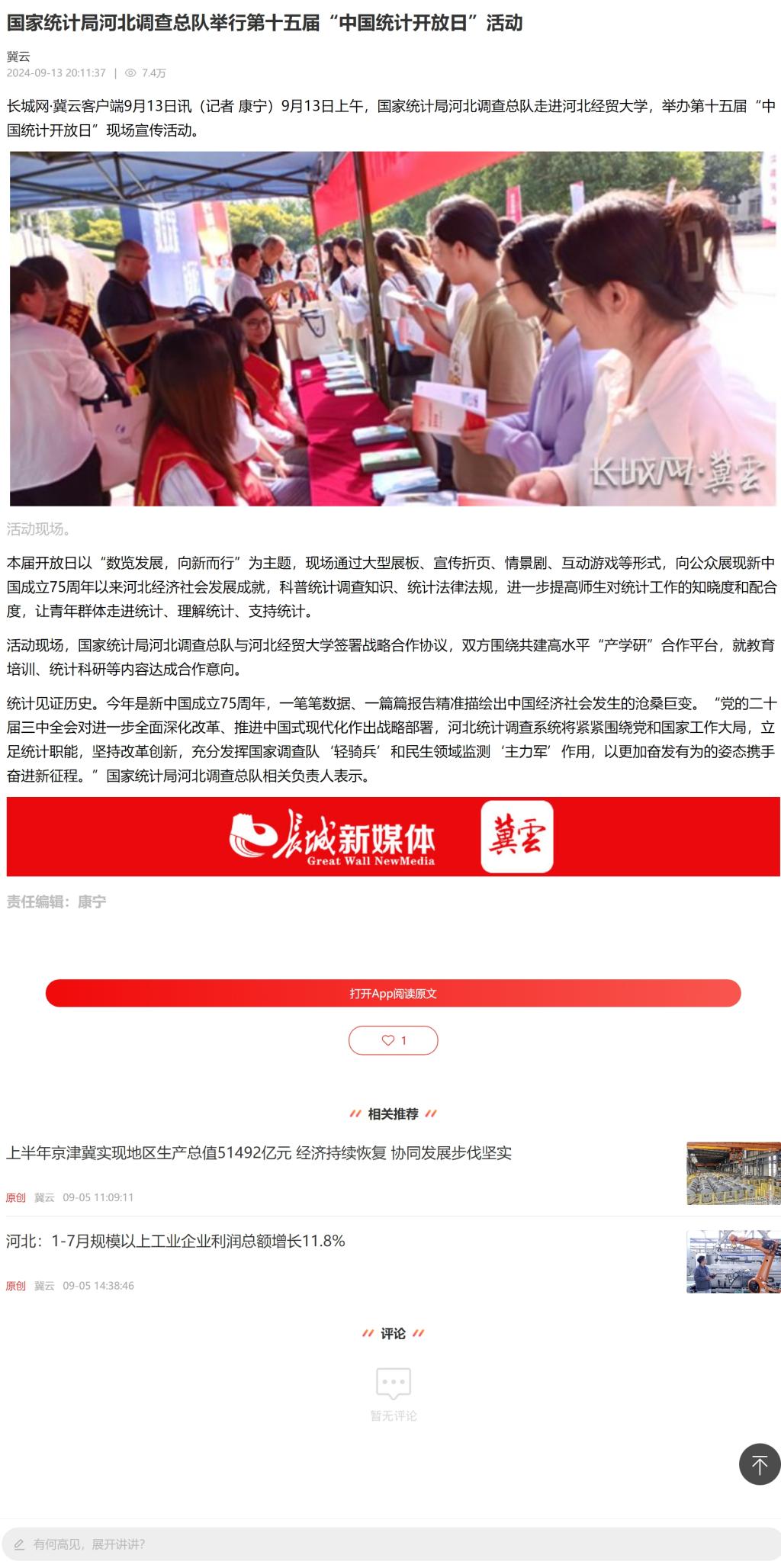 【长城网·冀云客户端】国家统计局河北调查总队举行第十五届“中国统计开放日”活动