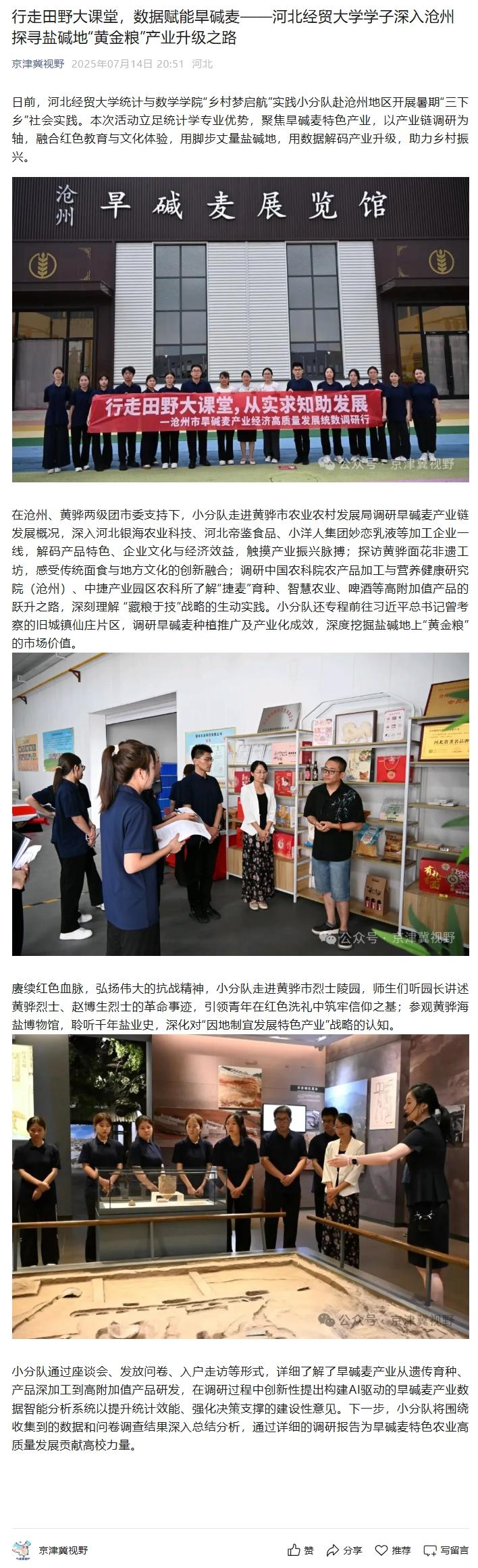 【京津冀视野】行走田野大课堂,数据赋能旱碱麦——伟德中国官网学子深入沧州探寻盐碱地“黄金粮”产业升级之路