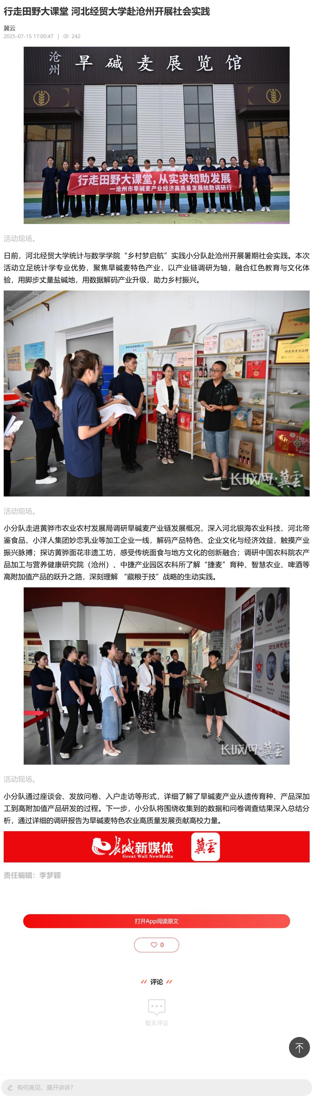 【长城网冀云客户端】行走田野大课堂 伟德中国官网赴沧州开展社会实践