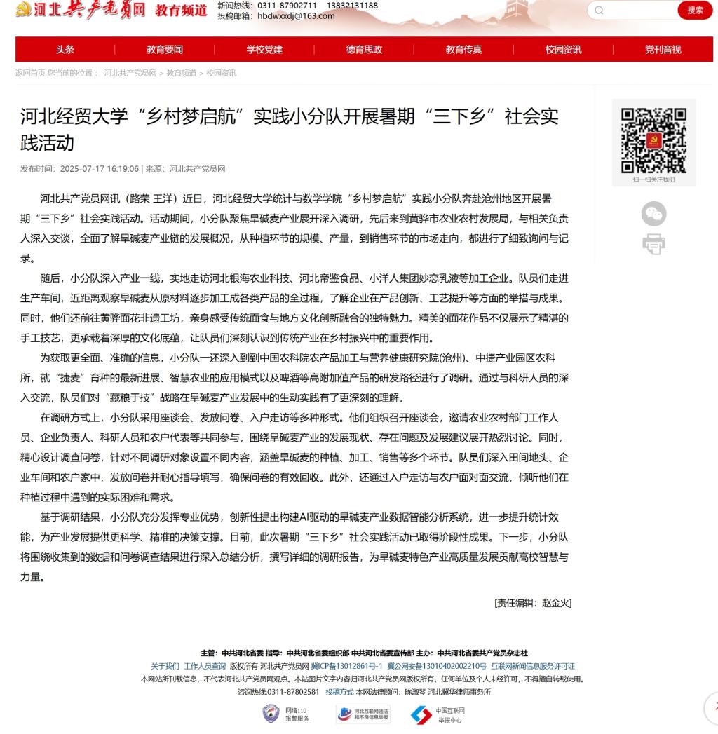 【河北共产党员网】伟德中国官网“乡村梦启航”实践小分队开展暑期“三下乡”社会实践活动